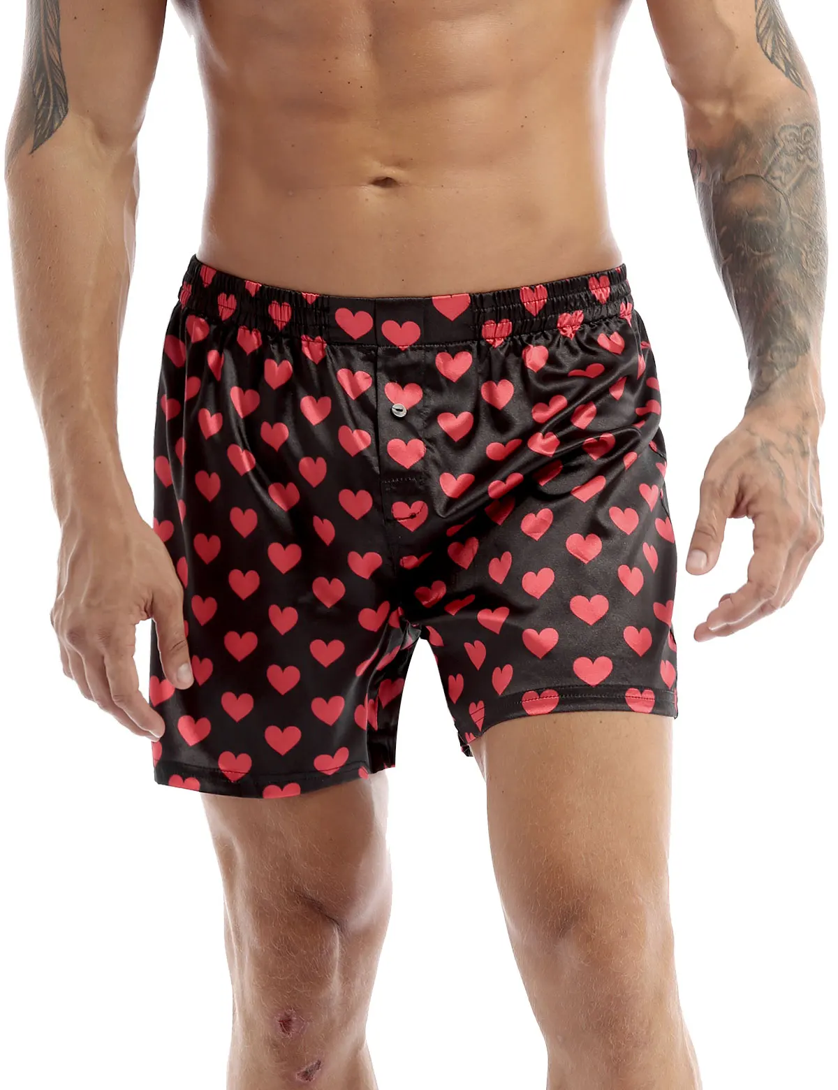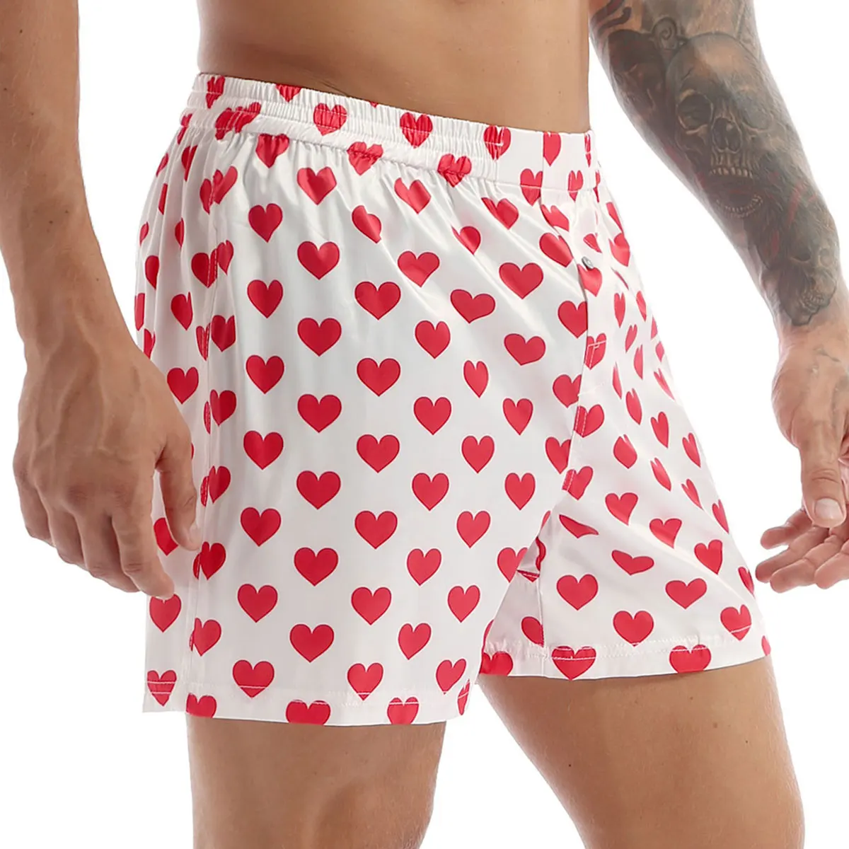 Мужские Классические мягкие боксеры iiniim с милым принтом сердечек, легкие свободные пляжные шорты для отдыха, мужские шорты