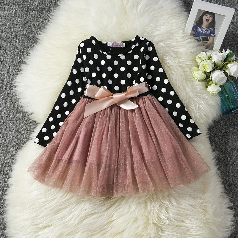 Новое платье для девочек, кружевная детская одежда с длинным рукаво...