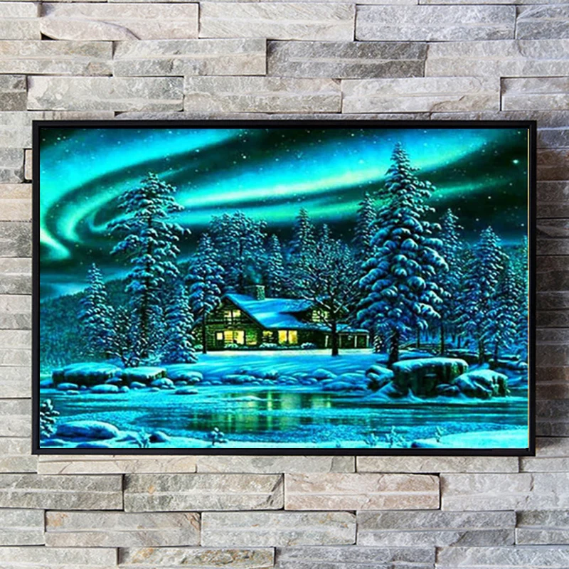 Набор для алмазной вышивки с изображением рождественского снежного пейзажа, 5d, квадратные Стразы
