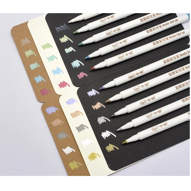Маркеры Sipa металлические, 10 цветов, для самостоятельного рисования альбомов, рисования на темной бумаге, открытках, фото
