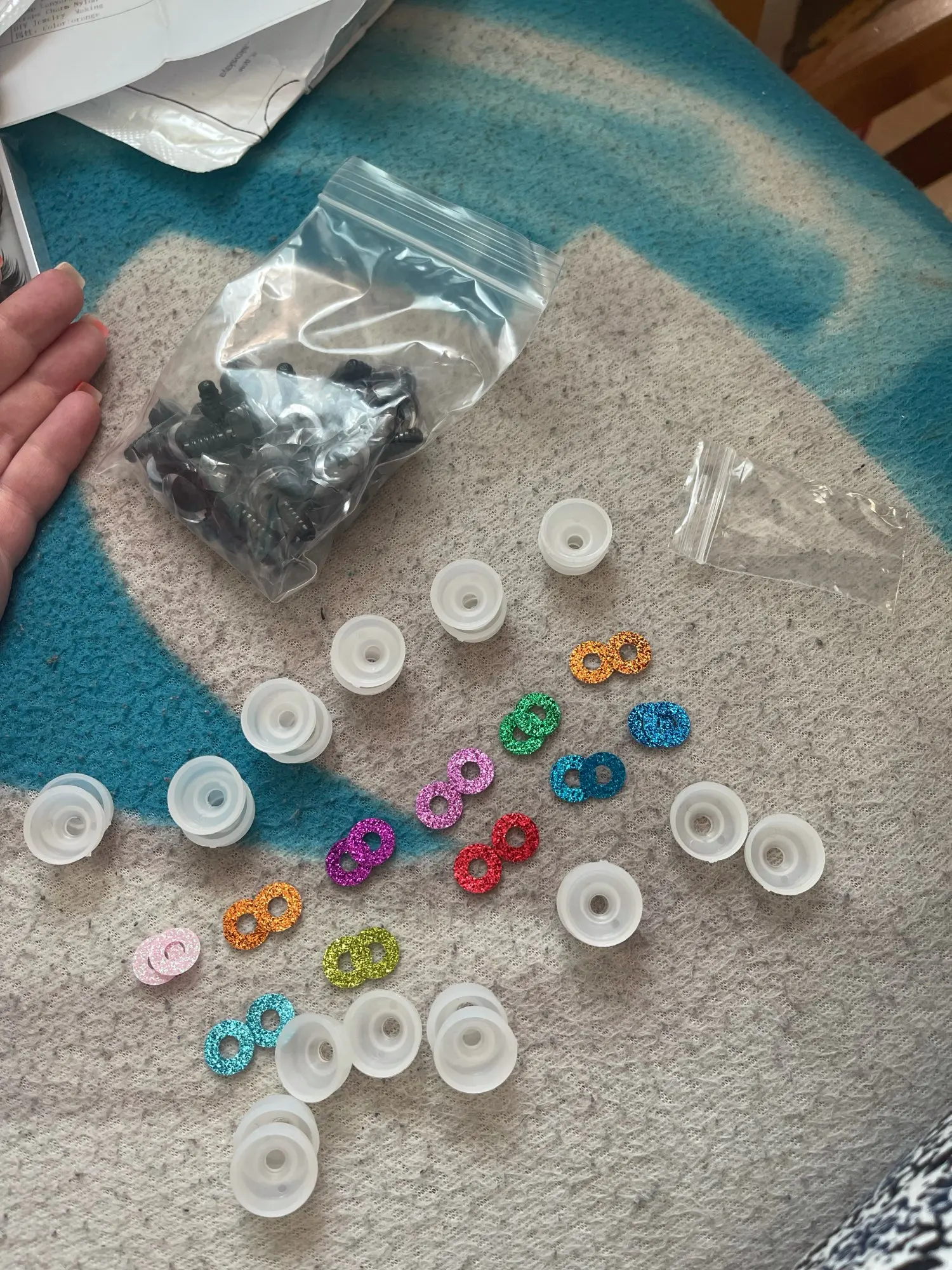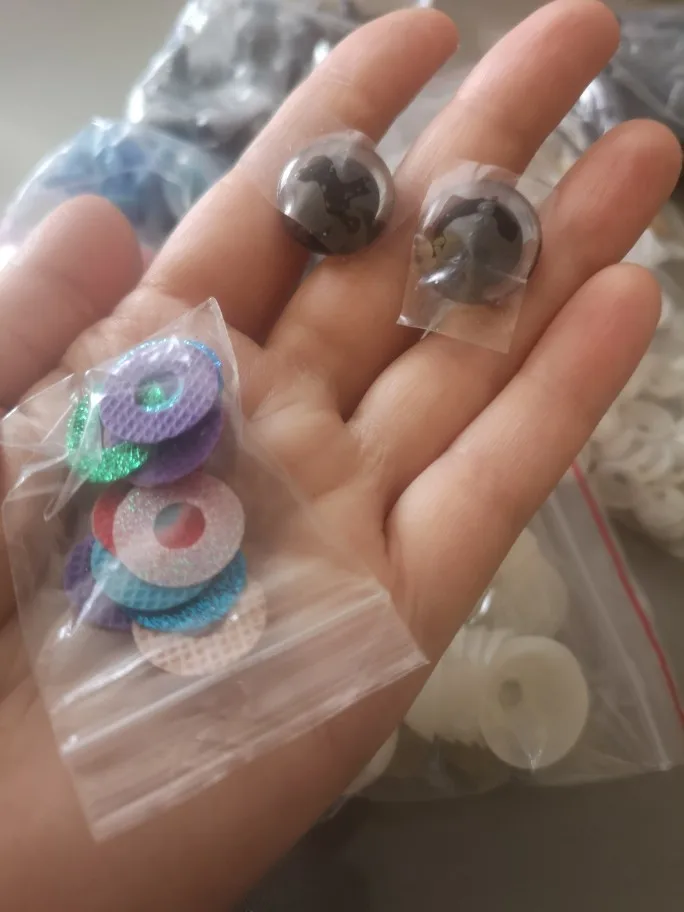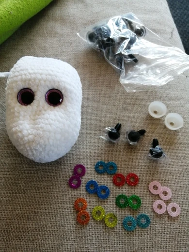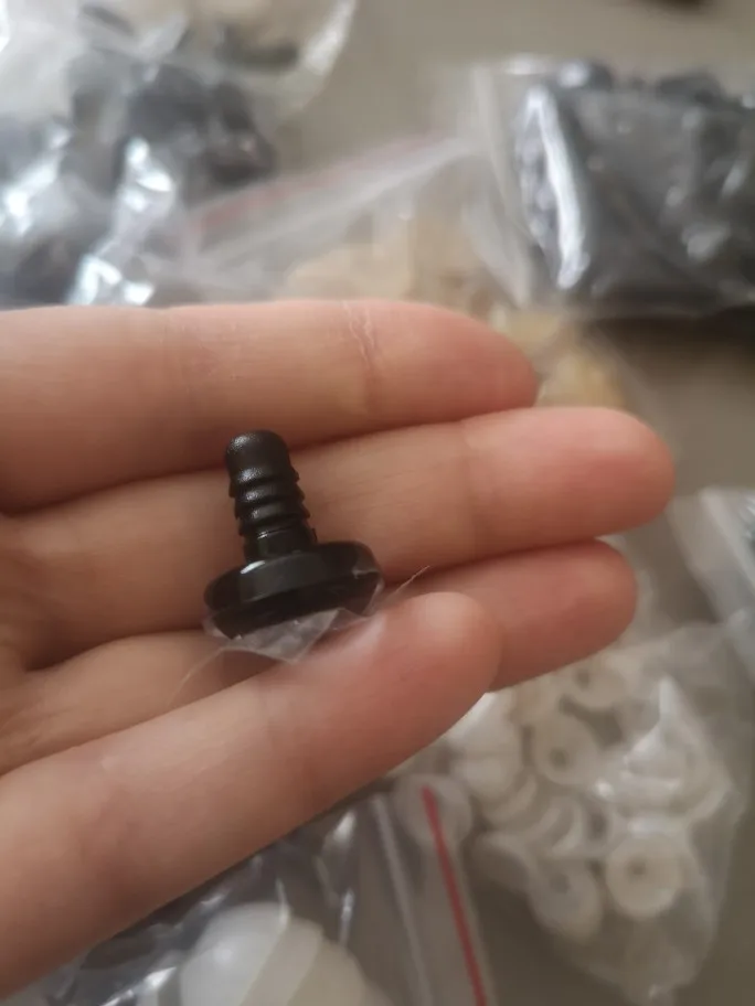 Посилка прийшла в гарному стані, все ціле і якісне. Продавець поставив на 2 шт більше( гарно дякую, продавцю). Оченята вкриті плівкою, заглушки легко одягаються і міцно тримають. Посилка прийшла за 2 тижні і 4 дні, у Чернівці. З продавцем не спілкувалась. Обов'язково ще буду замовляти))