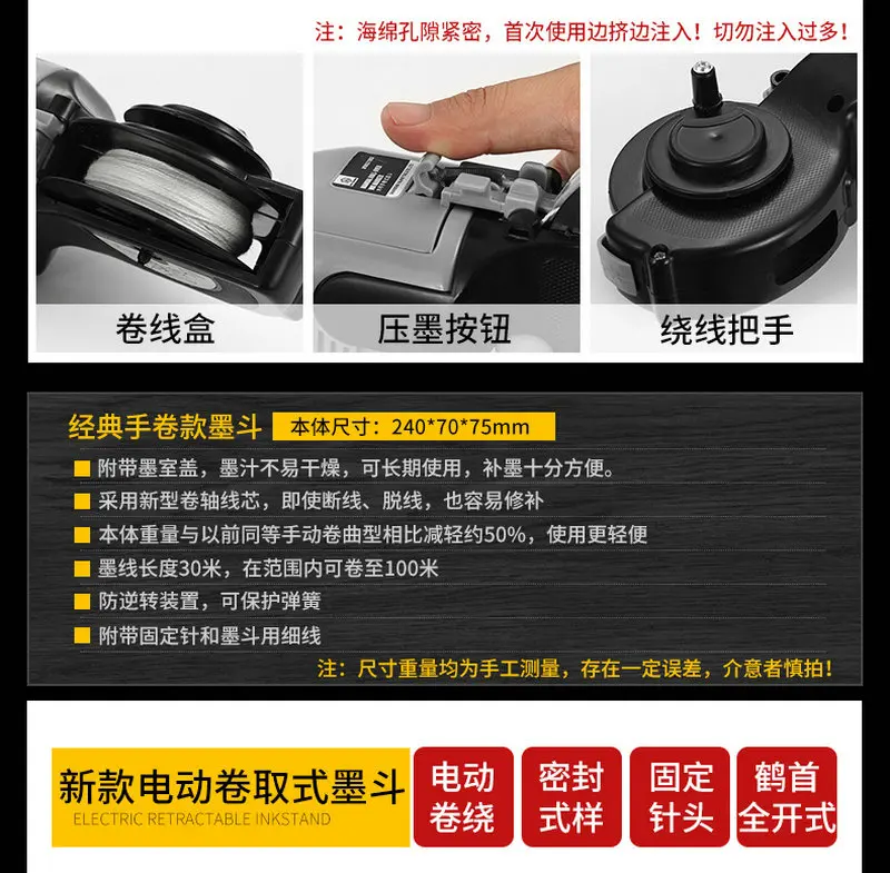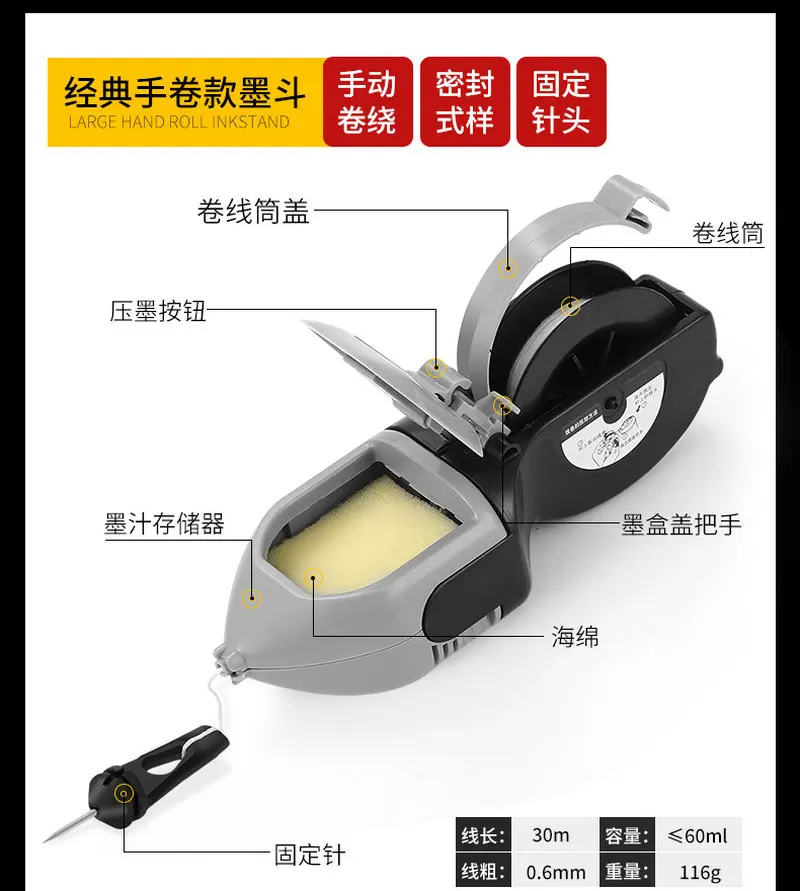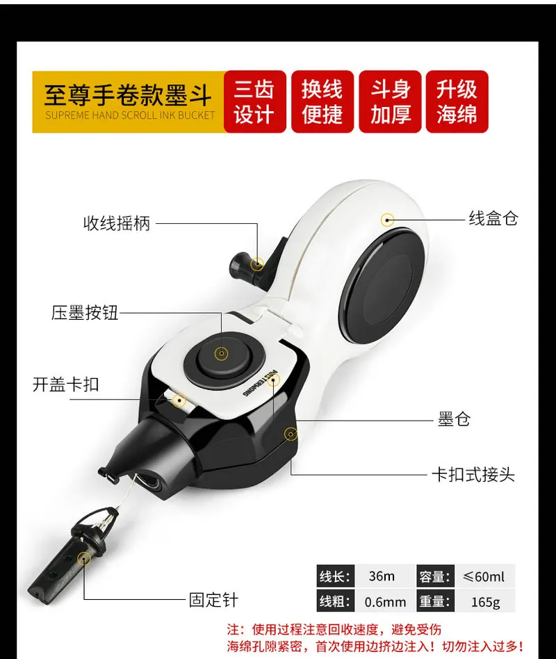 Инструмент для деревообработки и строительства, автоматическийручной маркер для чернил, ведро, канал для фонтана, меловая линия с большой пеной, 6-36 м, нейлоновый провод