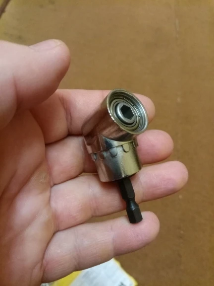 Такой адаптер уже заказывал. Сломал, но усилие было слишком чрезмерным. Так что прочность шестерёнок в нём более чем достаточная. Старый удалось разобрать, чтобы смазать, а у этого подшипник подклинило на выходе и пришлось запрессовать смазку через отверстие для бит. К покупке советую, в работе пригодится.