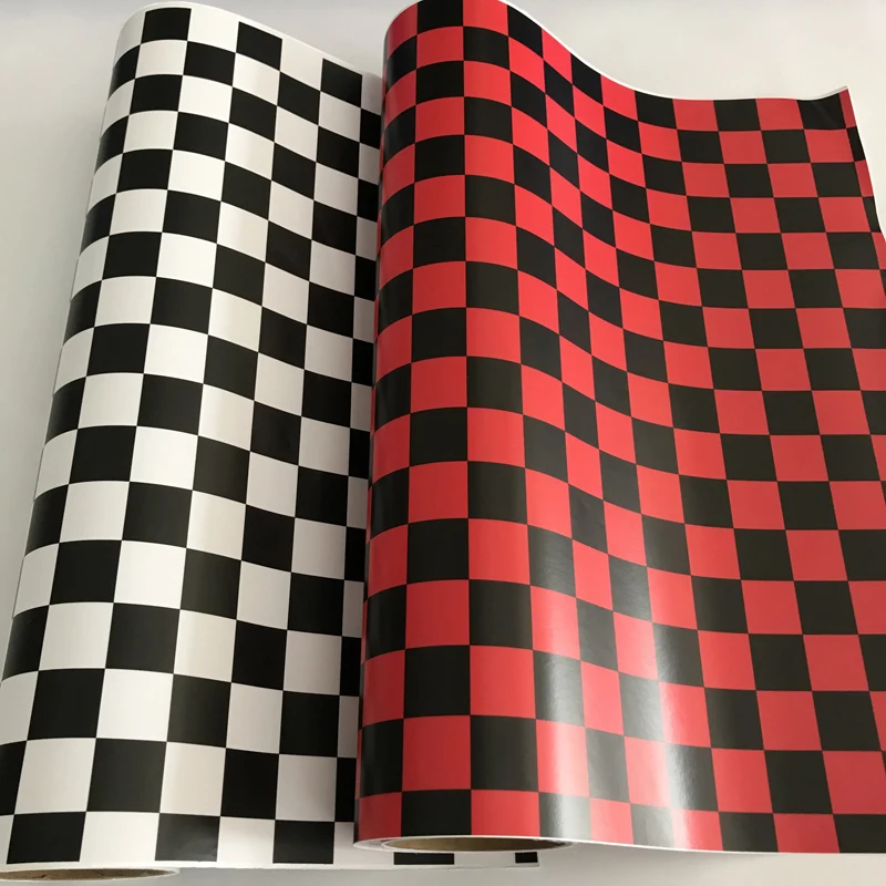 Клейкая виниловая наклейка в клетку, черного, белого, красного цветов, с воздушными пузырьками