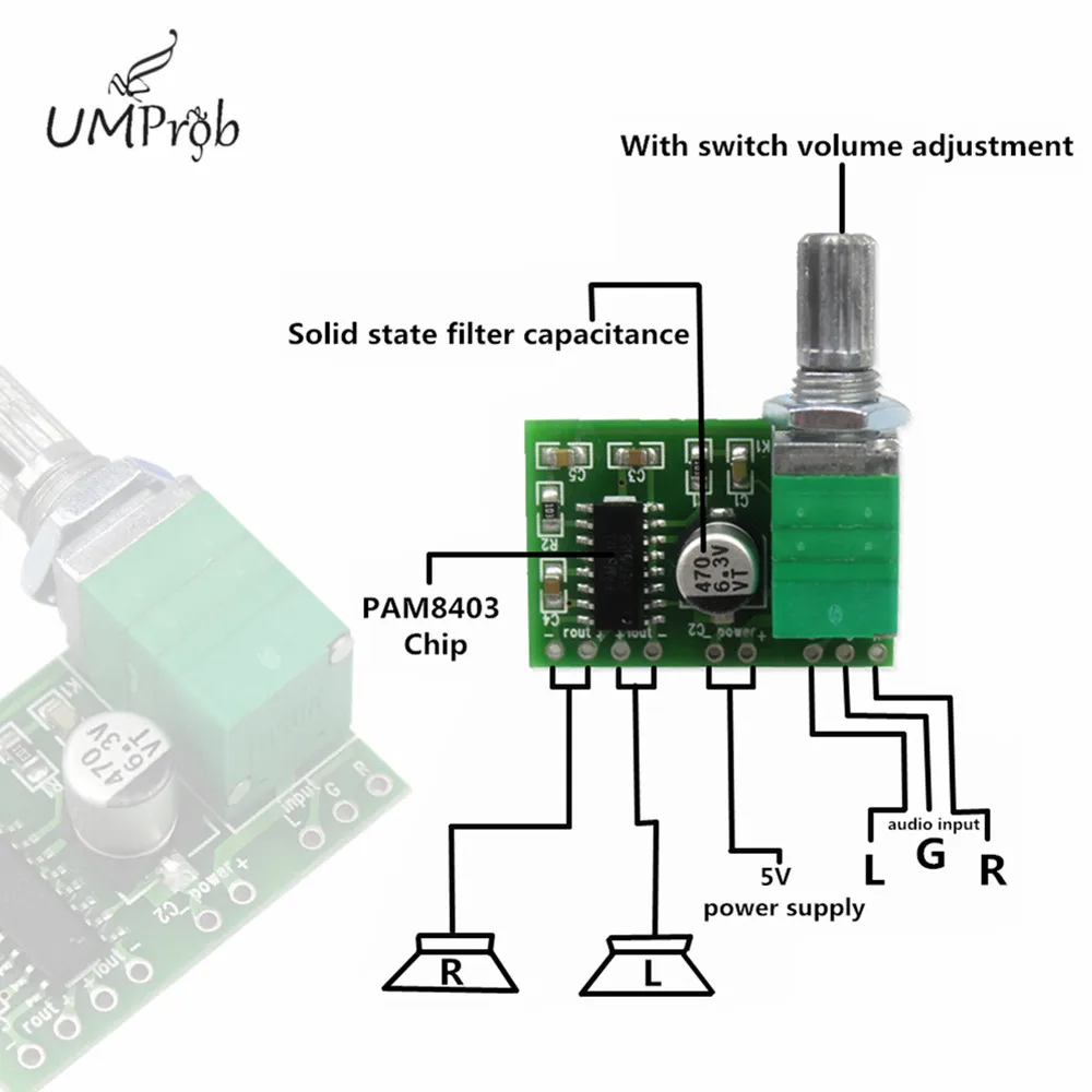 Плата усилителя звука PAM8403, 5 В, 2 канала, 3 Вт, регулятор громкости, USB
