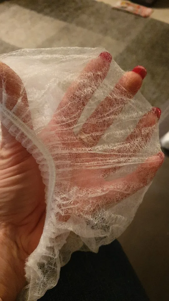 Шапочки оказались полиэтиленовыми. Странно. Неудобные, если только для душа. Не годится для клиентов. Продавцу желаю успехов и полного описания товара