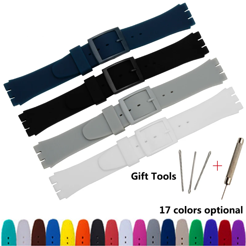 Ремешок силиконовый мягкий водонепроницаемый для наручных часов, сменный резиновый браслет с цветной пряжкой, подходит для образец ремешка, 17 мм 19 мм