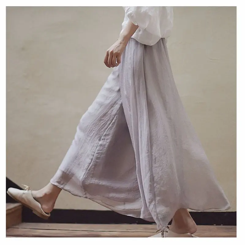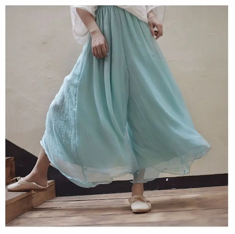 Брюки женские с широкими штанинами, винтажные повседневные хлопково-льняные свободные штаны в китайском стиле, с завышенной талией, PA34, лето 2021