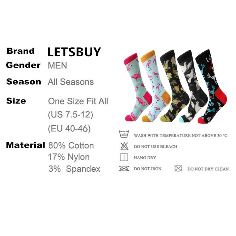 LETSBUY5 паралот, мужские Мультяшные хлопковые носки с изображением животных, птиц, цветов, цветные длинные носки, забавные носки для мужчин, повседневные носки для свадьбы, gif