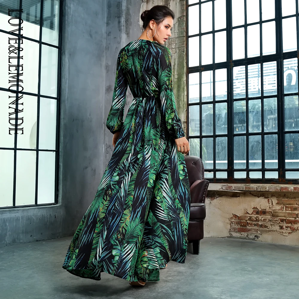 Женский шифоновый комбинезон LOVE LEMONADE, комбинезон с длинными рукавами, глубоким V-образным вырезом и принтом листьев, модель LM80428