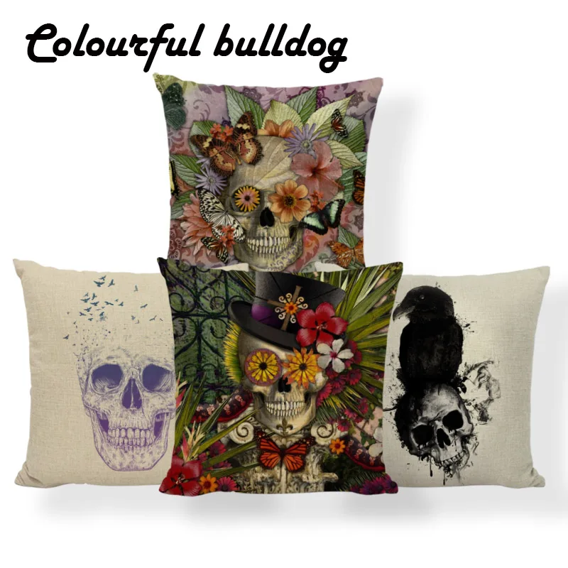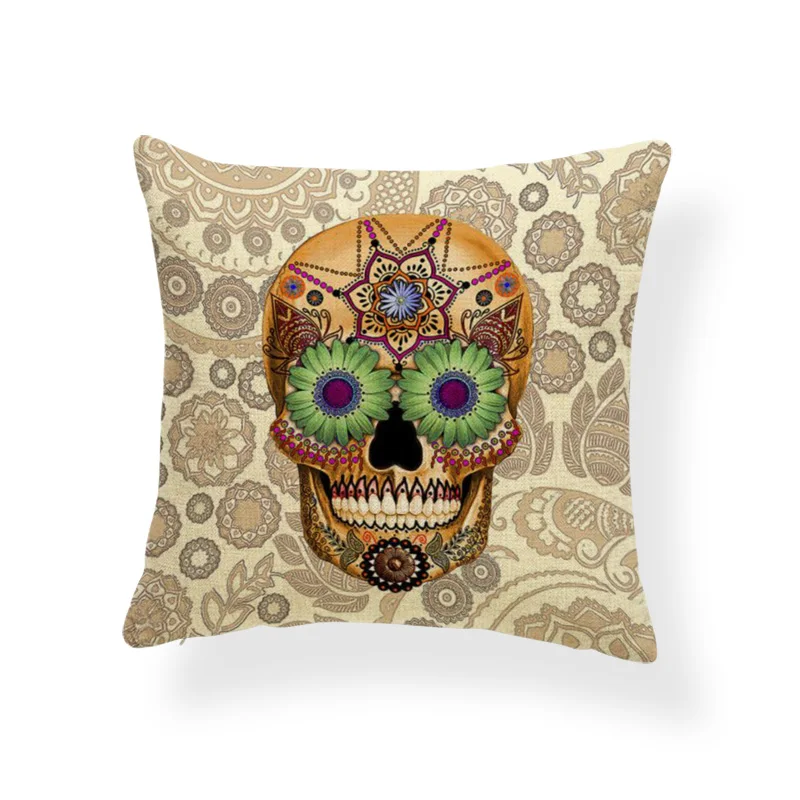 Сахарный Череп Мексиканская Подушка на Хэллоуин чехол s ужас розы тропический стиль домашний праздничный подарок бабочка Бросок Подушка Чехол 45х45см льняная Пастельная
