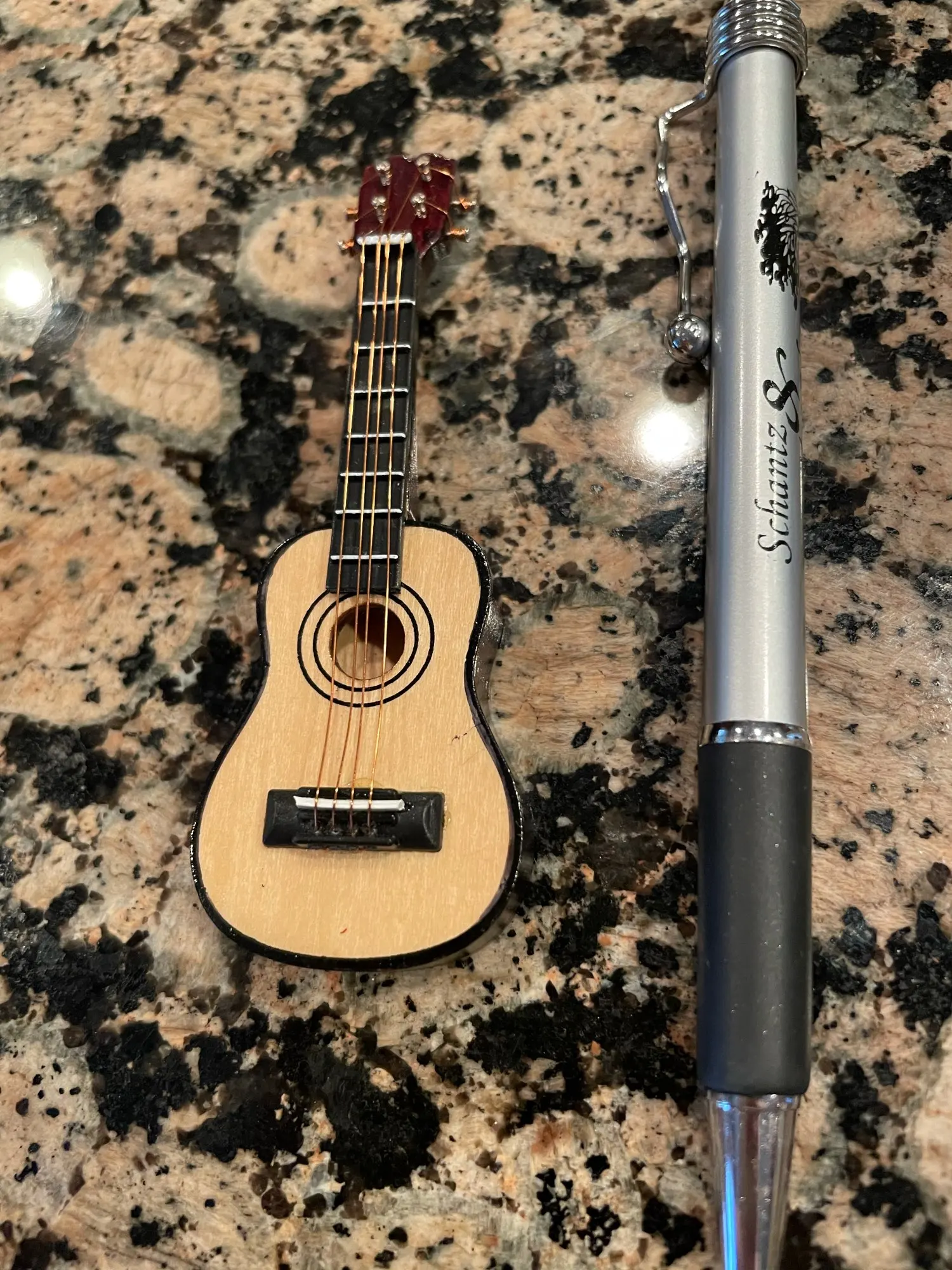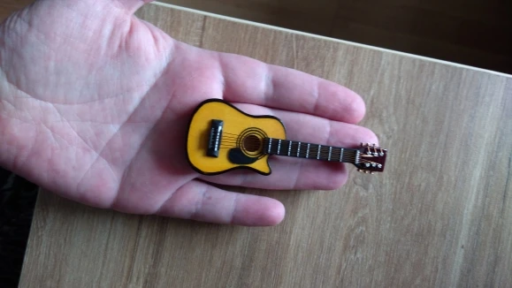 Гитара миниатюрная как брелок, не указан размер гитары.
