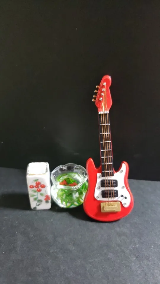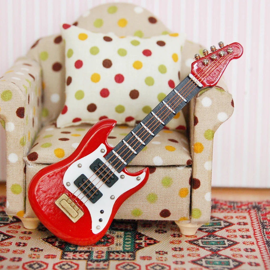Миниатюрный музыкальный инструмент MagiDeal, электрогитара для детей, 4 цвета, 1:12, кукольный домик, развивающая музыкальная игрушка, Декор для дома