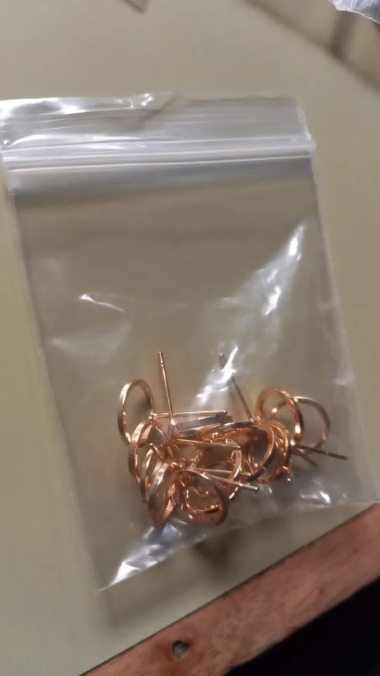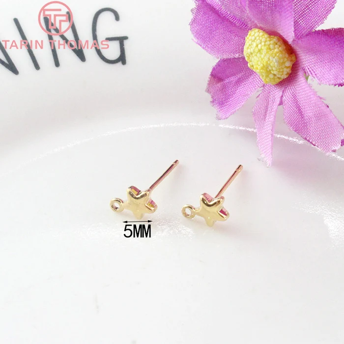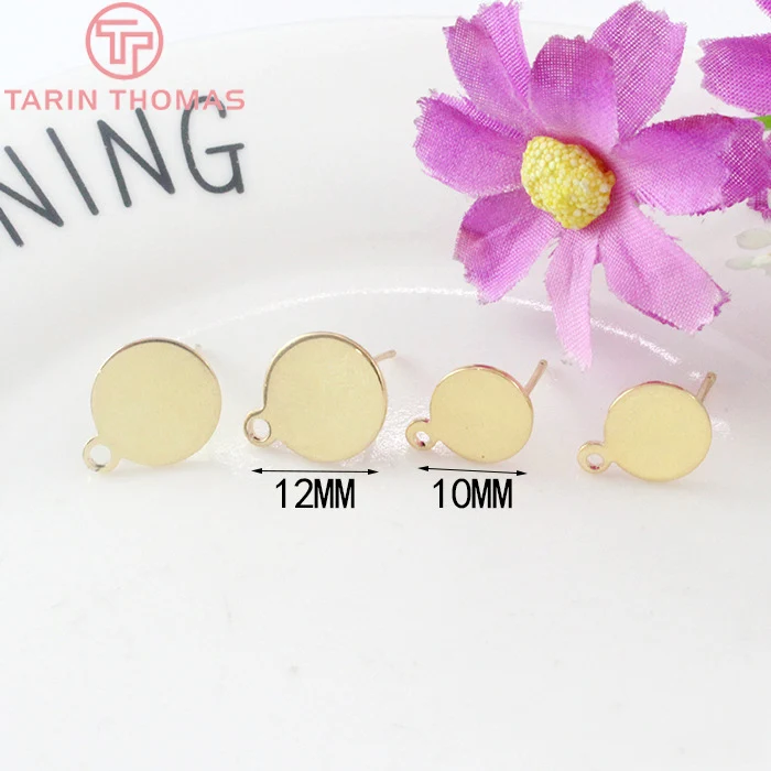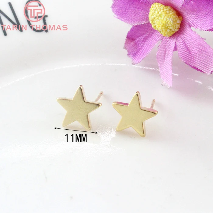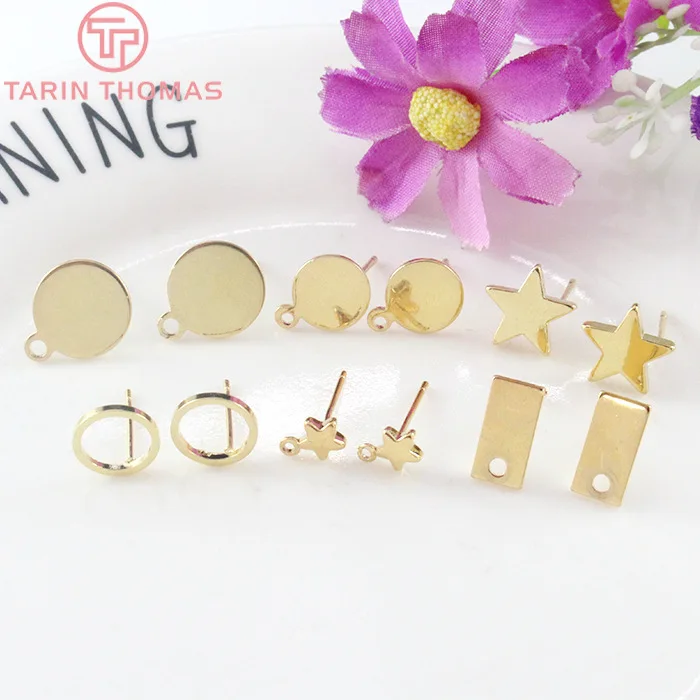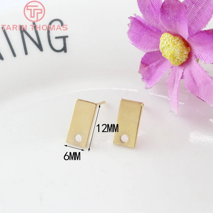 Серьги-гвоздики латунные с покрытием 24-каратным золотом, 12 шт. (3704)