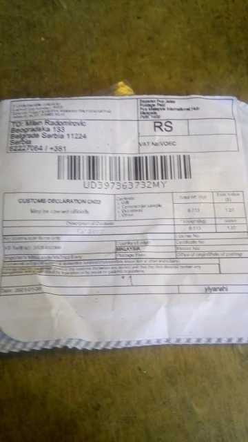 Страна: CZ Доставка: Cainiao Super Economy Global 08.03.2021