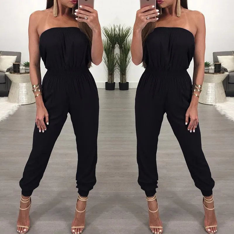 Черный комбинезон без бретелек, Женский Летний комбинезон без рукавов, 2018 офисная одежда, элегантный повседневный комбинезон, женские комбинезоны, одежда