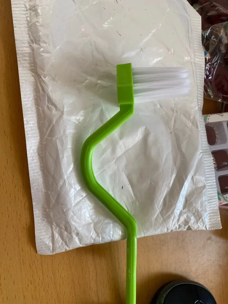 неожиданно быстрая доставка (всего 2 недели). Нужная приспособа, ручка не очень большая, но это даже хорошо, достает там, где ёршиком чистить неудобно.