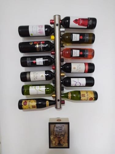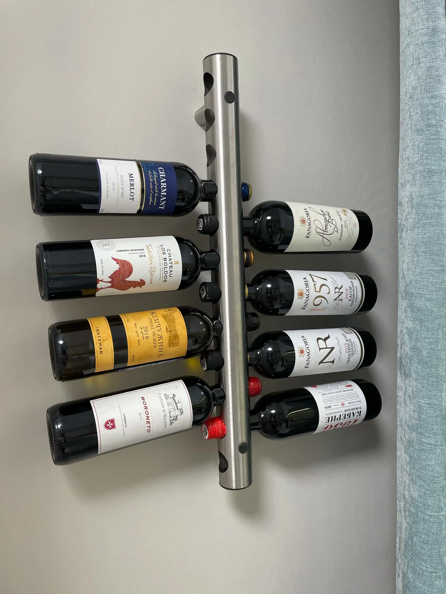 Классная. Выглядит солидно. Матовый хром. Бутылку держит. Ещё не прикручивали. Дюбели длинные в комплекте, но думаю надо взять ещё мощнее бабочки или не знаю какие, потому что вес с 12-ю бутылками будет очень солидный. Очень довольна. Заказ пришёл быстро.