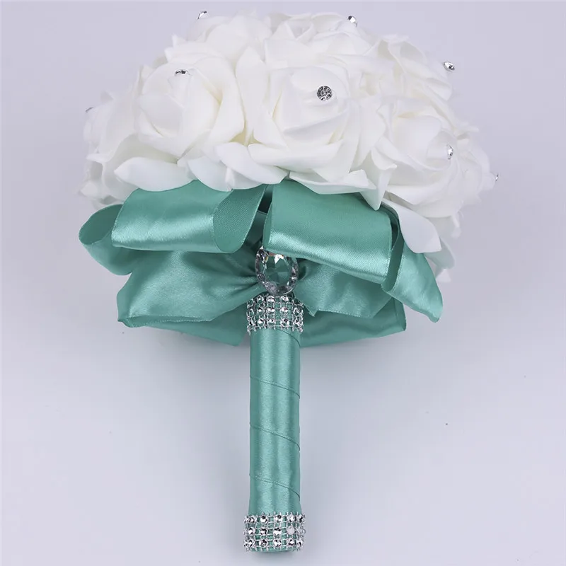 WifeLai-A, 16 цветов, 1 шт., горячая Распродажа, цветы из пены для невесты, розы, лента, поддельный свадебный букет