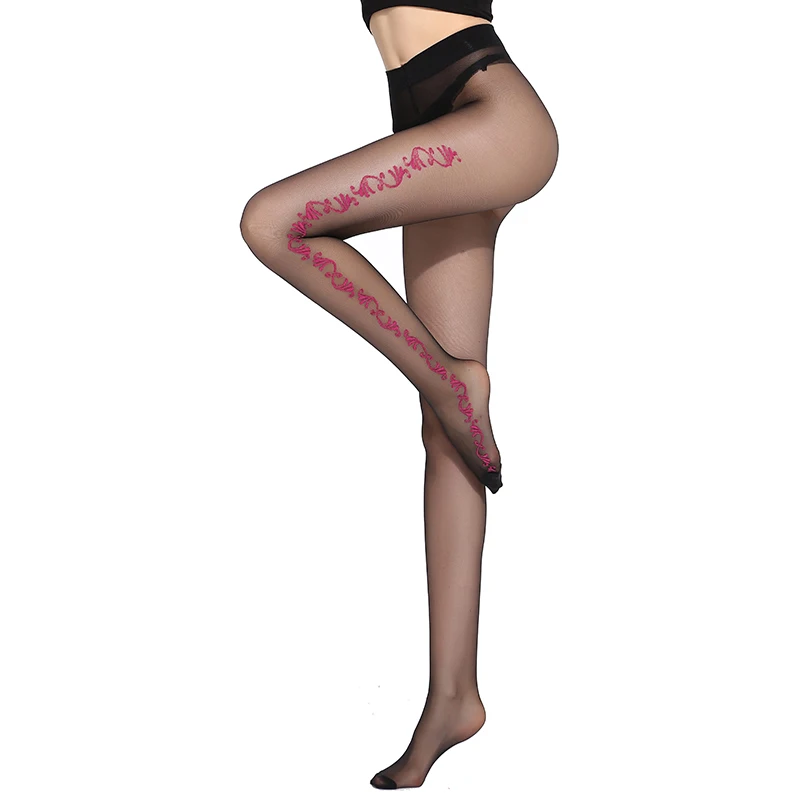 20 ден ультра легкие летние модные и сексуальные женские жаккардовые колготки с красным узором из пряжи сердечника шелковые колготки чулки
