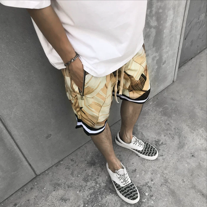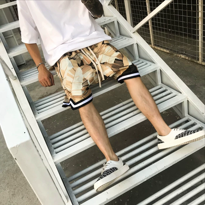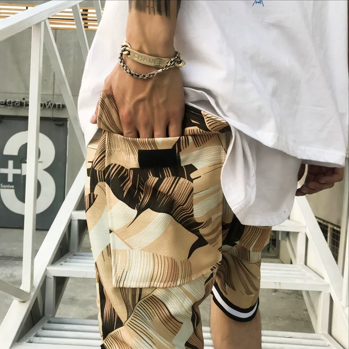 Мужские шорты в стиле хип-хоп, клетчатые шорты в цветочек, с большими карманами, шорты-шаровары, лето 2018