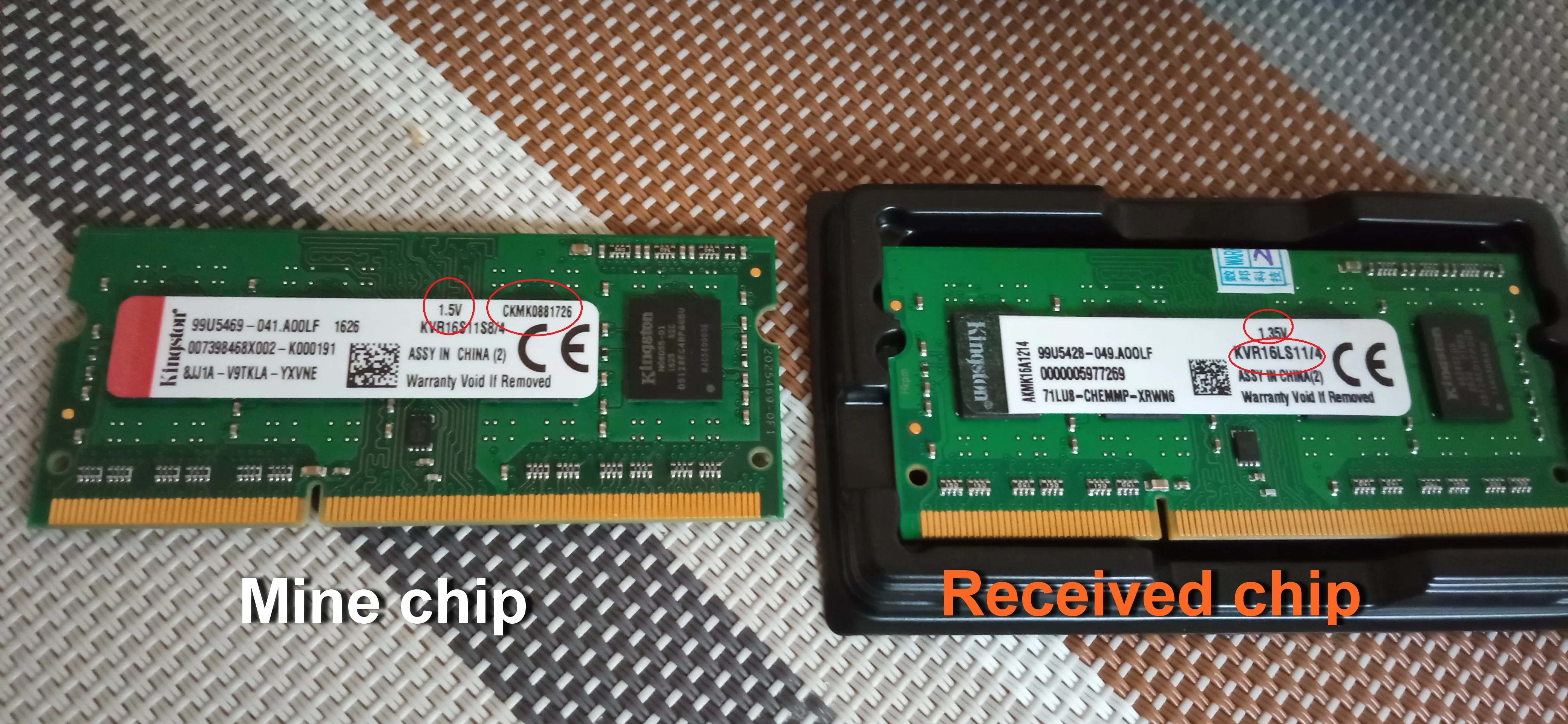 Seller sent a wrong chip. I received KVR16LS instead of KVR16S. Luckily, it works with mine chip. Time of delivery - 2 weeks. Продавец прислал другой чип. Вместо KVR16S приехал KVR16LS. Похож на родной. К счастью, он работает с моим чипом.