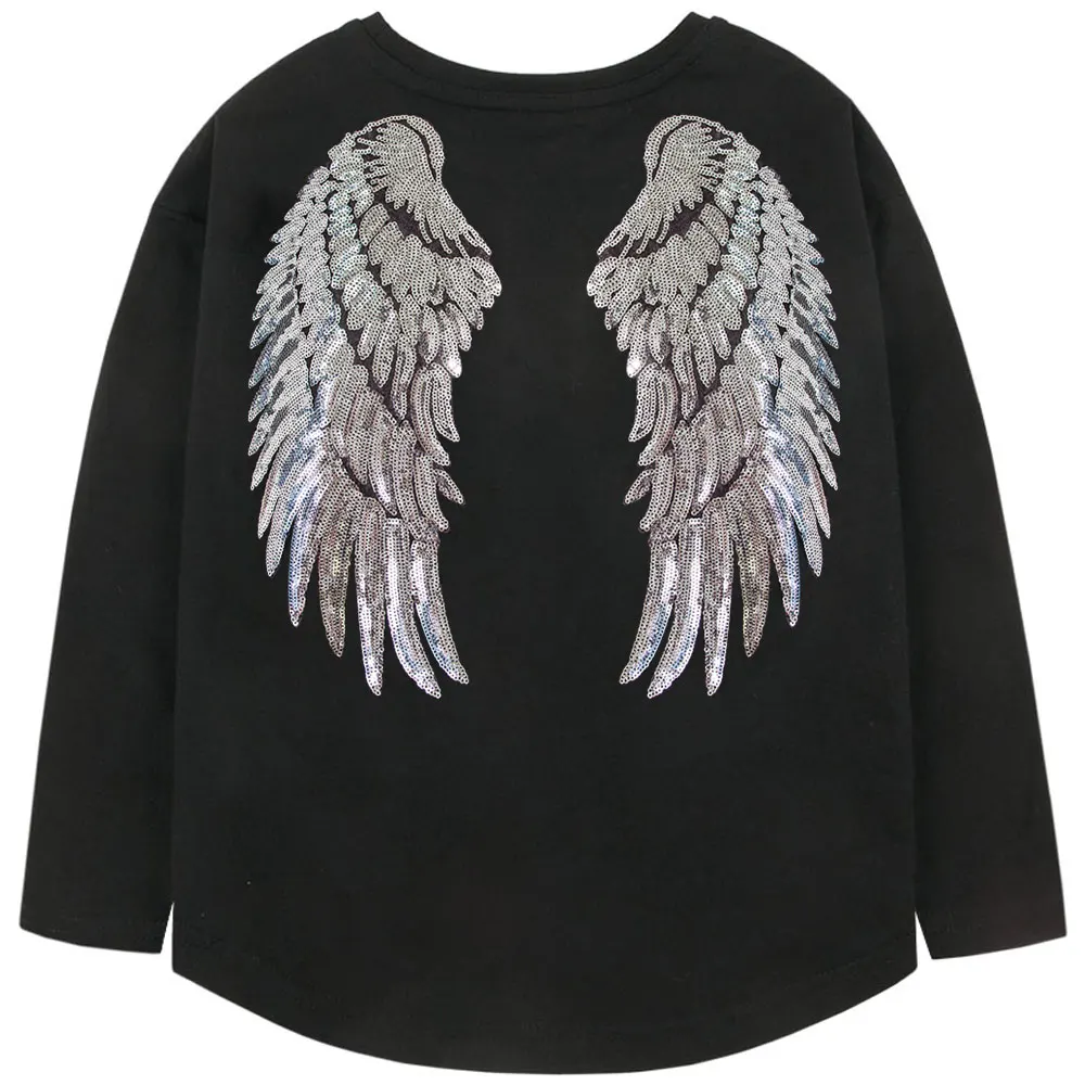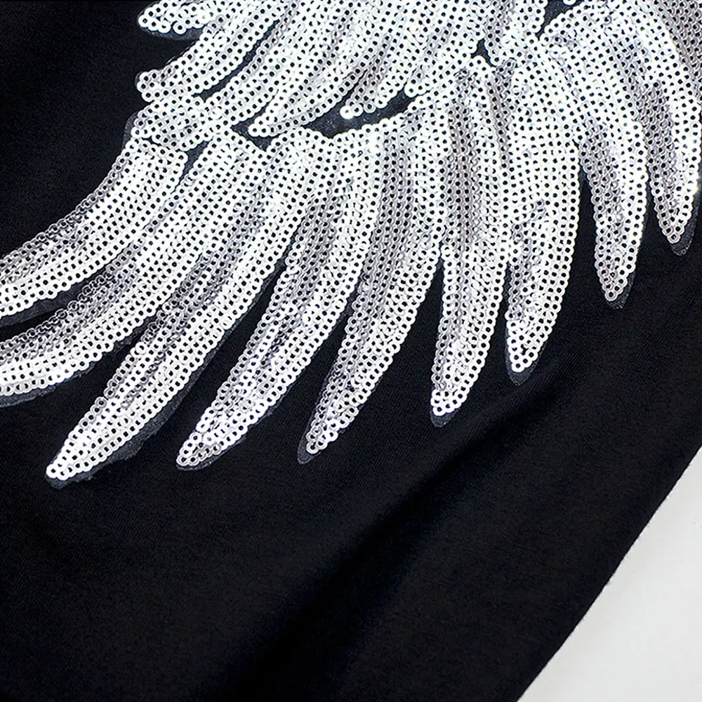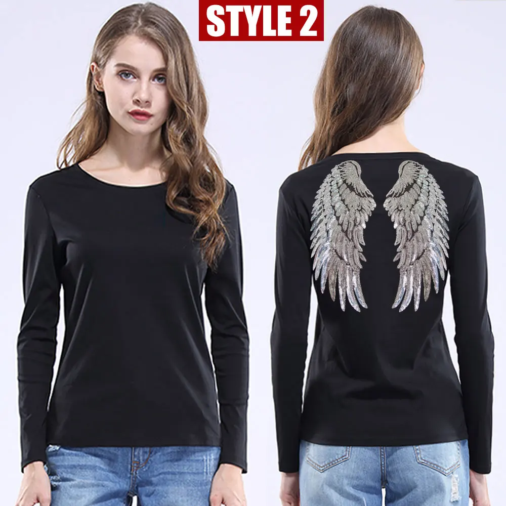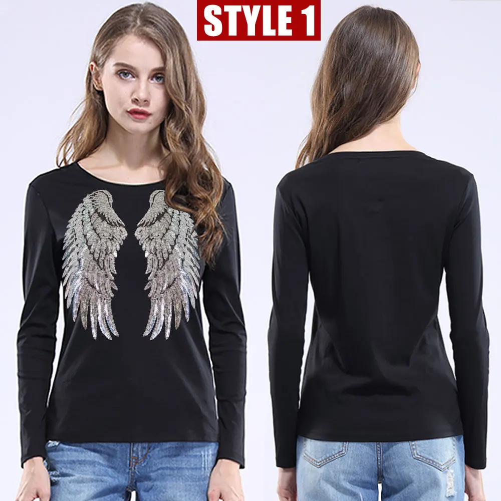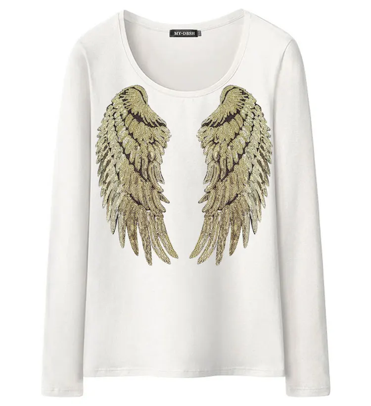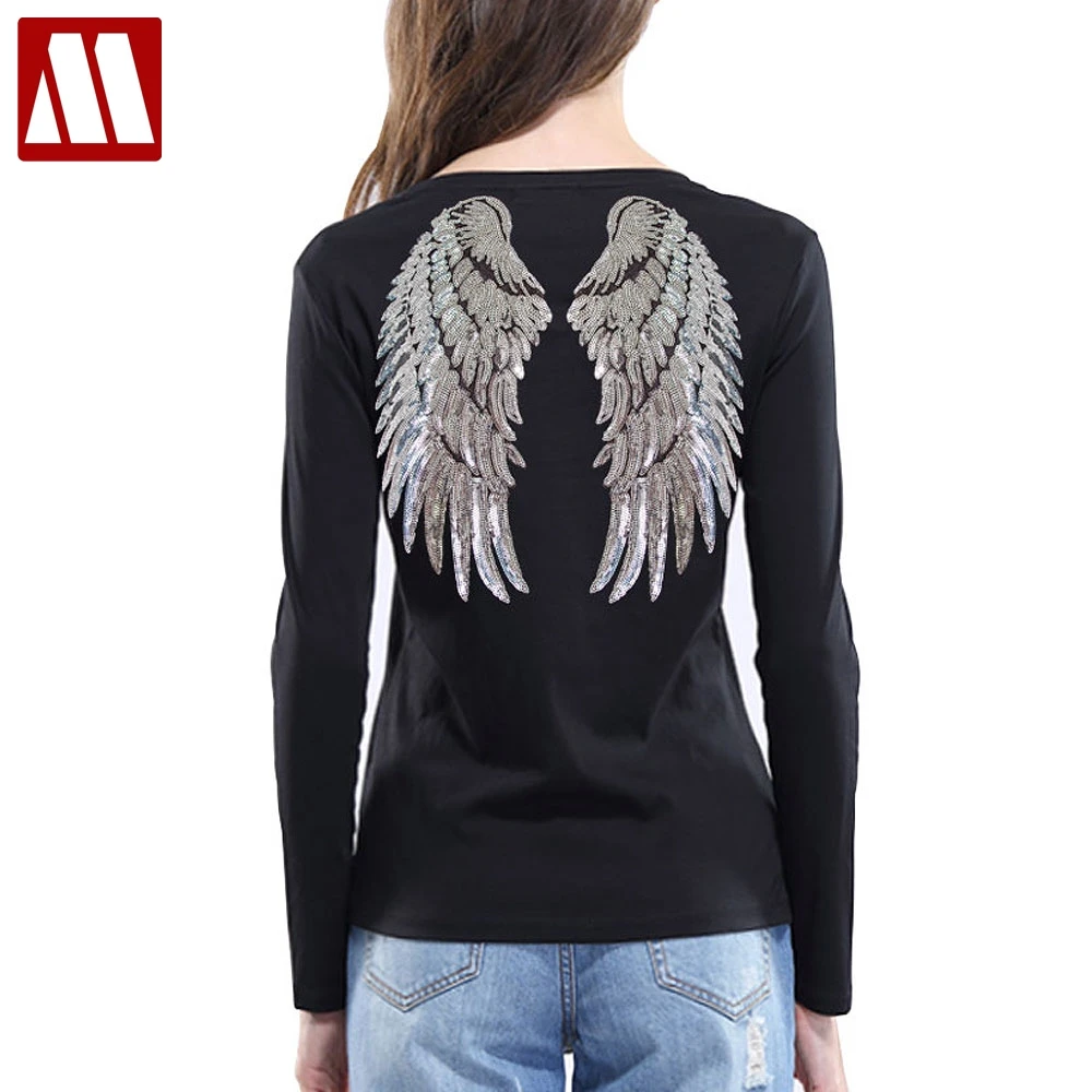 Футболка женская в стиле панк-рок, повседневный топ с аппликацией крыльев Ангела, с пайетками, в стиле Харадзюку, с длинным рукавом, лето 2021
