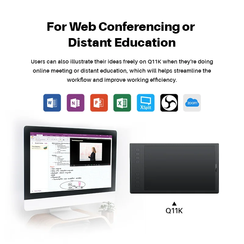 Планшет Графический Huion Inspiroy Q11K, беспроводной, с 8192 уровнями нажатия, 8 Экспресс-клавиш и держателем для ручки