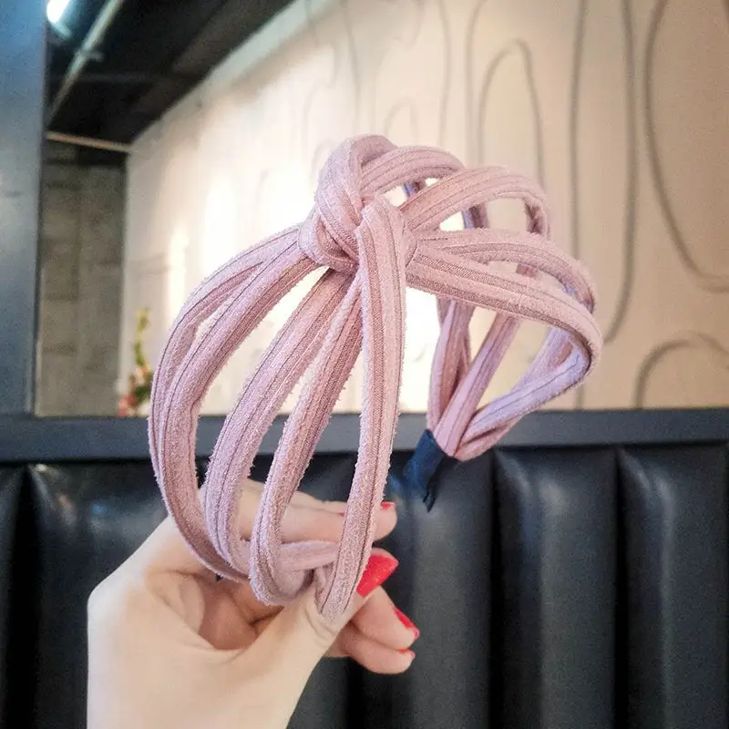 Женская повязка на голову с бантом, однотонная широкая повязка для волос ручной работы