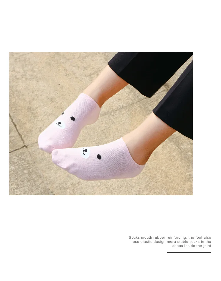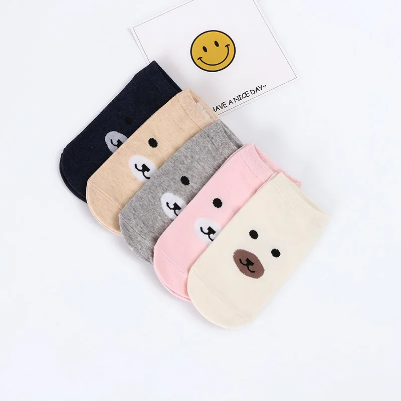 Невидимые короткие женские носки Little bear, Летние удобные хлопковые носки-лодочки для девочек, женские Чулочные изделия до щиколотки, 1 пара = 2 шт. ws164
