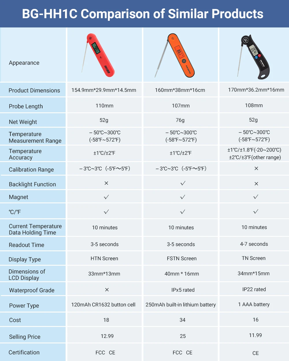 Цифровой Кухонный Термометр Inkbird BG-HH1C для духовки, пива, мяса, пищи, зонд для барбекю, электронный термометр для духовки, кухонные принадлежности