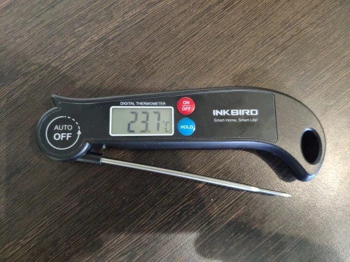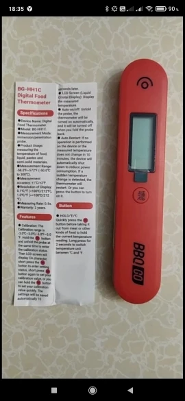 Описание товара соответствует реальному, качество сборки хорошее, пришел за 5 дней, доставили до двери. Измерение температуры проходит быстро, достаточно точен. На кухне однозначно пригодится.