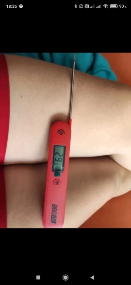 В Беларусь пришёл за 45 дней, упакован в пакет с пупыркой и картонная коробочка (немного помялась). Температура тела 36,2 град. С, кипяток в чайнике 100,4 град. С, изменяется температура достаточно быстро. Батарейка в комплект не входила, корпус показался хлипковат, пользоваться надо аккуратно. Магнит слабый, съезжает с дверки холодильника. Товар на четвёрочку, для репутации продавца поставлю пять звёзд. Посмотрим на сколько хватит в эксплуатации. Лучше купить модель подороже с защитой от воды.