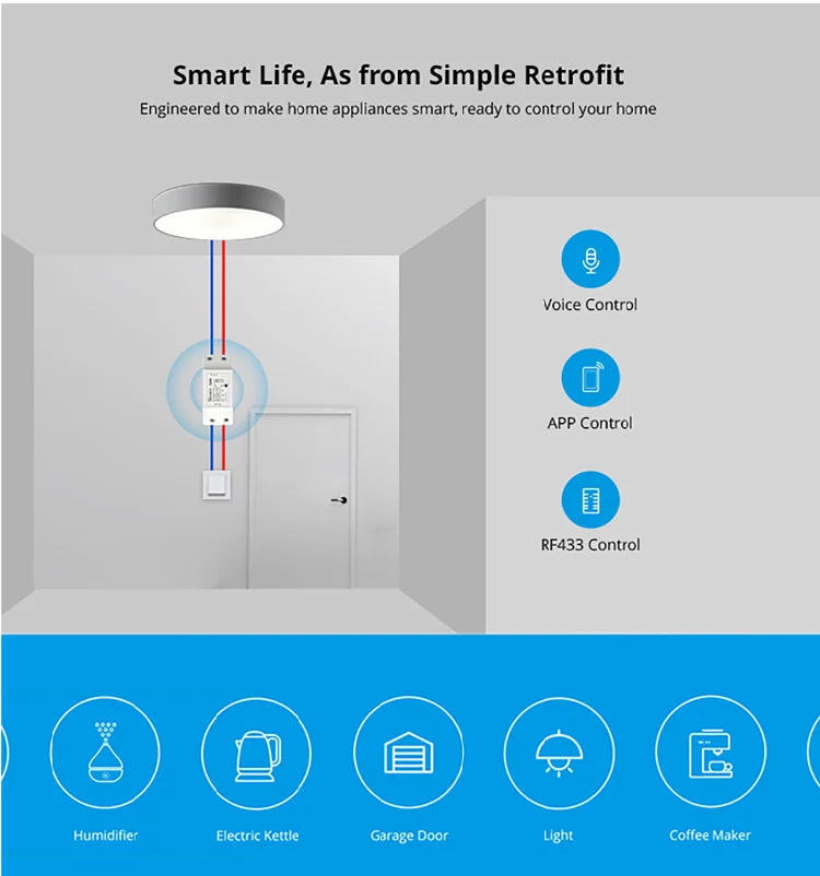 Sonoff WiFi управляемый переключатель делает все бытовые приборы умными.