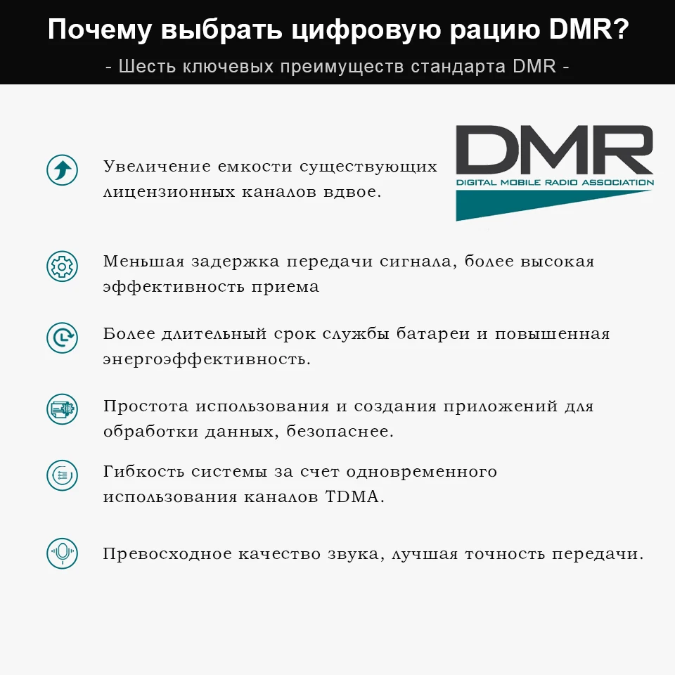 За почти 2 недели использования выявилось следующее: Из минусов: Иногда не определяется компьютером в режиме программирования каналов (при потключении на "горячую")-лечится перезагрузкой. Не регулируемые по громкости системные звуки (звуки нажатия кнопок и т.п.)- дорабатывается не сложной пайкой. Неудобный штатный софт для программирования (набивать много однотипных каналов в самой программе очень долго) - выручает конвертация различных списков (каналов, Dmr контактов) в таблицу где редактирование производить гораздо удобнее. Но стоит учитывать что привязка в группах и зонах осуществляется по номеру строки в таблице, а не по имени. Из плюсов: Удобный режим сканирования Две программируемые кнопки в удобном месте Стакан для зарядки не блокирующий доступ к кнопкам Вердикт : Радиостанция больше для радиолюбителей ( с позывным, присвоенным гос. органами), ведь им доступны одна фишка DMR связи - доступ к сети Dmr репитеров где рация раскрывается по полной