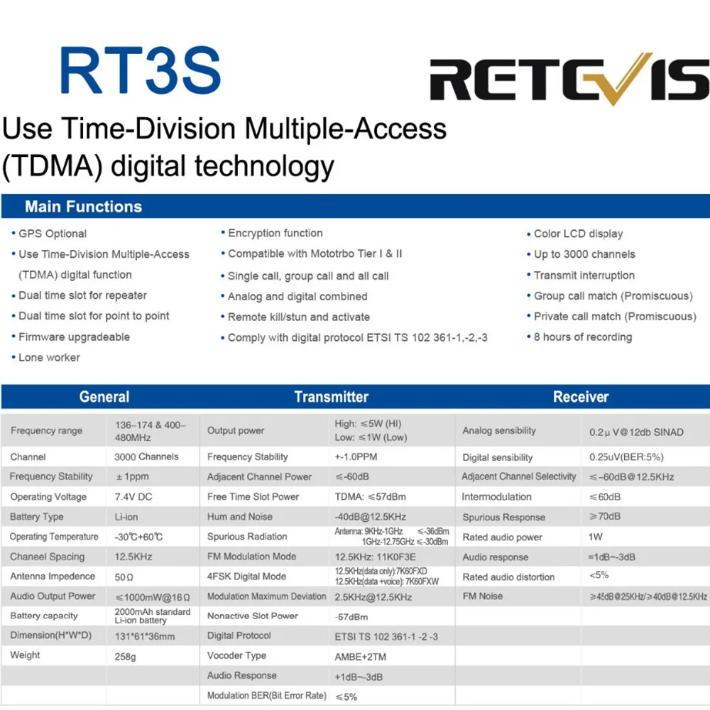 Цифровая рация Retevis RT3S DMR, любительские радиостанции, профессиональные любительские двухсторонние радио VHF UHF GPS APRS 5W