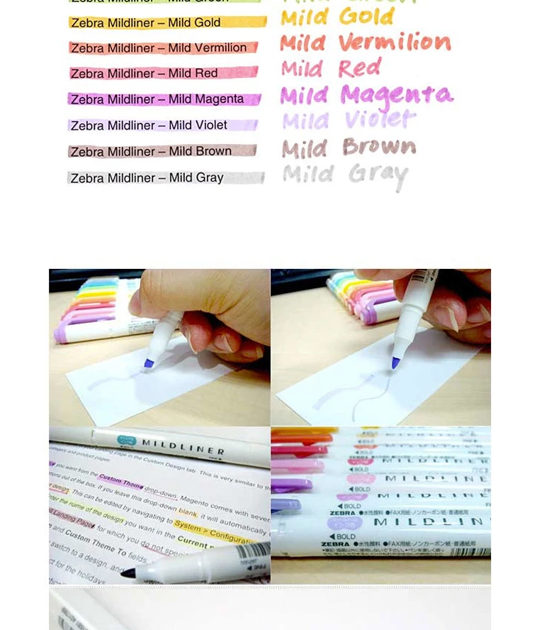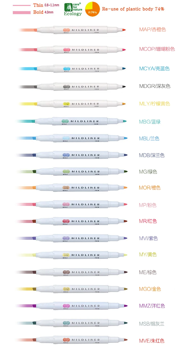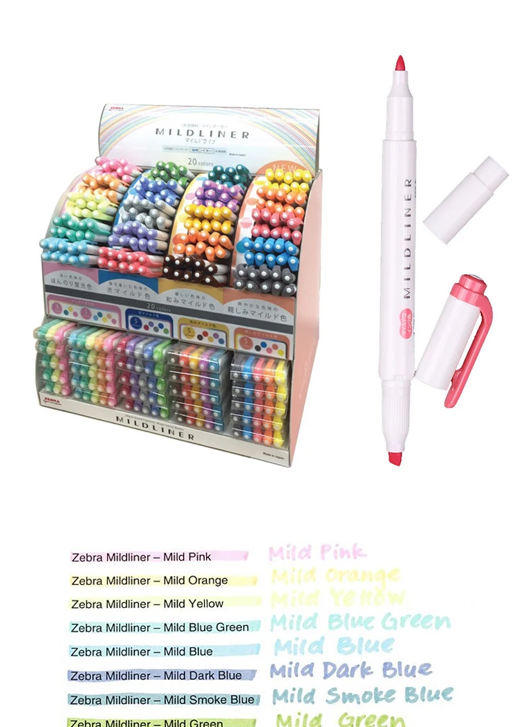1 шт. Зебра Mildliner двухсторонний хайлайтер тонкийсмелый 20 флюоресцентные цвета ручка крюк ручка маркер, фломастер
