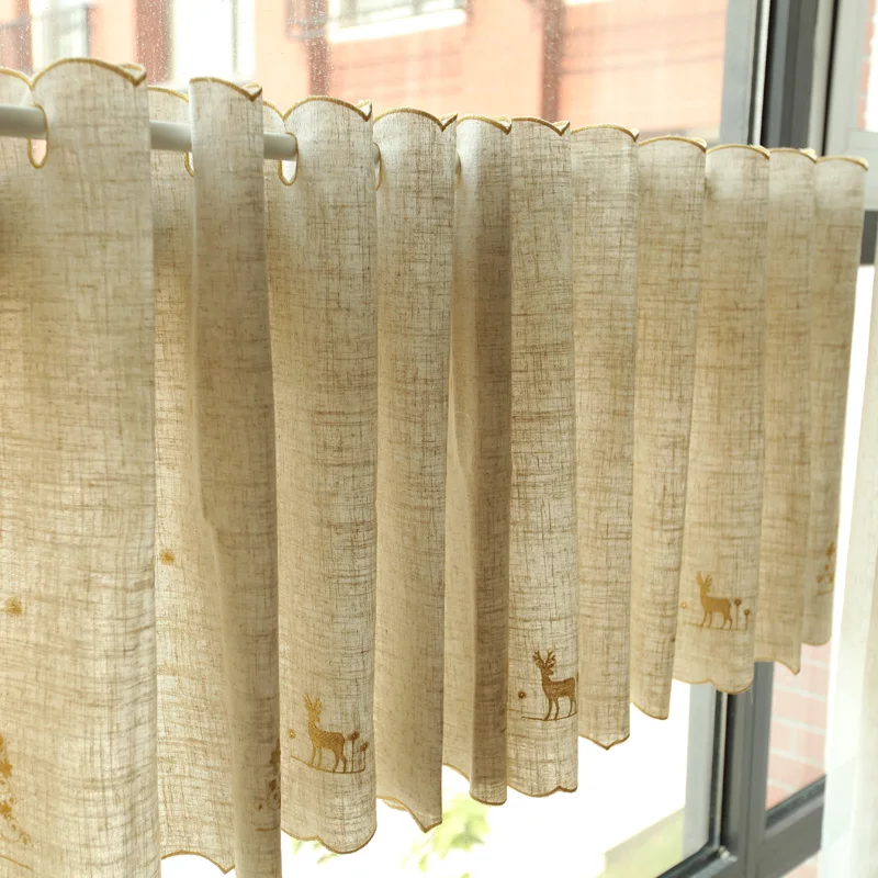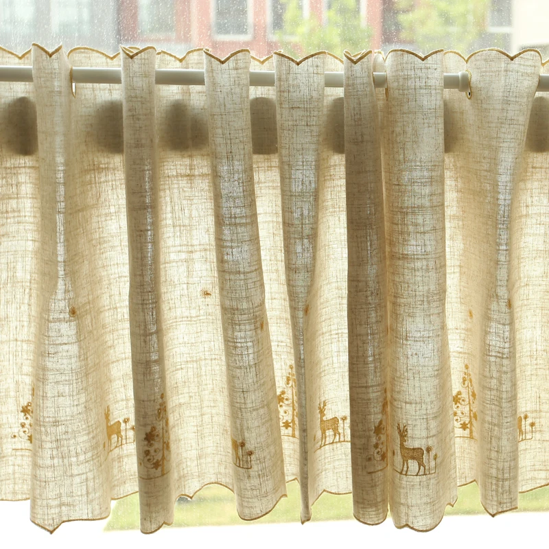 Пасторальный оттенок, кухонные шторы с оленем, вышивка, кофейня, половина занавески, дверь, Кортина, короткая панель, занавески для Рождества