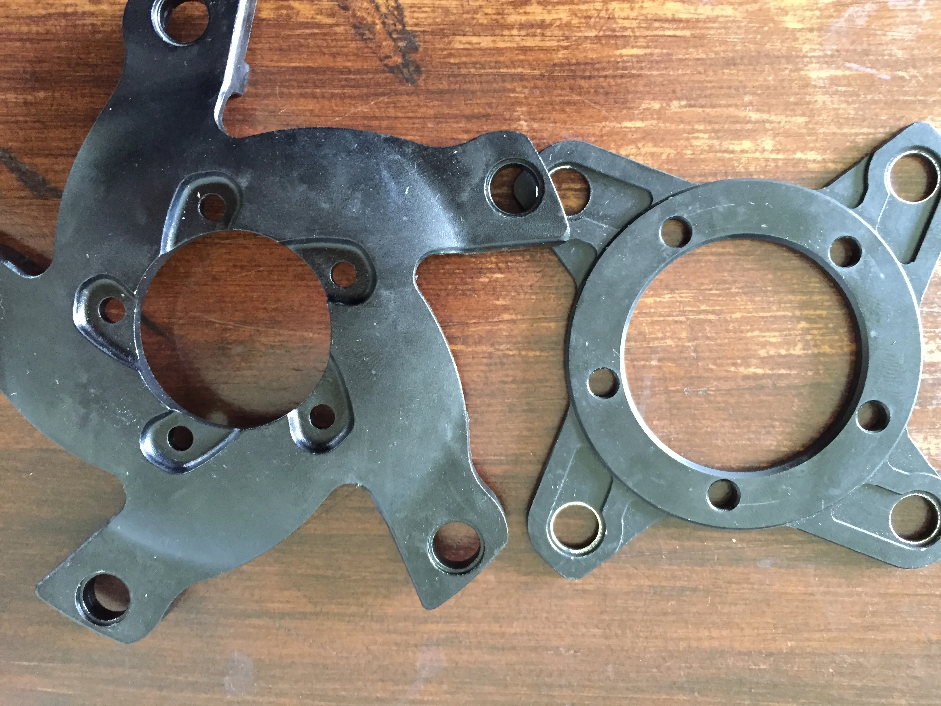 Для моего мотора Bafang 8fun с центральным отверстием и отверстиями для крепления болтов был неправильный размер. Я сумел подогнать его под некоторые изменения. Большие отверстия и прокладки болтов на фото-это правильный размер.