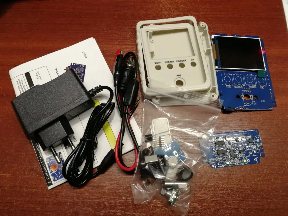 Во Владимирскую область пришел быстро-за 16 дней. Собрал без проблем. Почти все собрано даже резисторы. конденсаторы (вместо обычных- смд ) Работает. Инструкция на английском, но итак все понятно по сборки по картинкам. Купил чтоб научится пользоваться осциллографом, для этих целей подойдет.