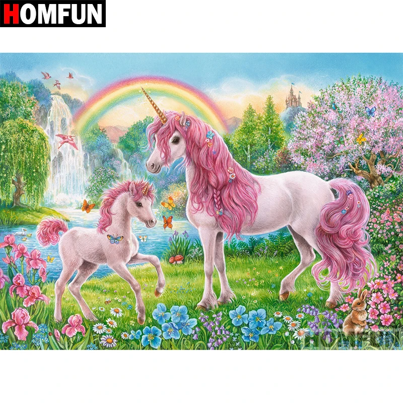 Алмазная живопись HOMFUN A07115, алмазная вышивка животное, Единорог, полная выкладка, круглыйквадратный дизайн, для домашнего декора, 5D