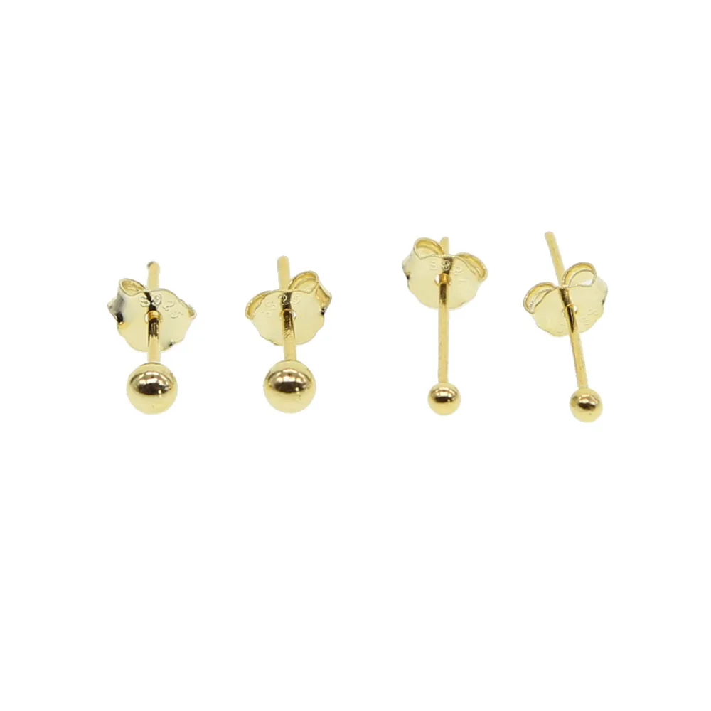 Новые маленькие серьги-гвоздики из стерлингового серебра 925 пробы золотого цвета, 2 мм, 3 мм, изящные круглые мини-серьги в горошек, серьги с гвоздиками