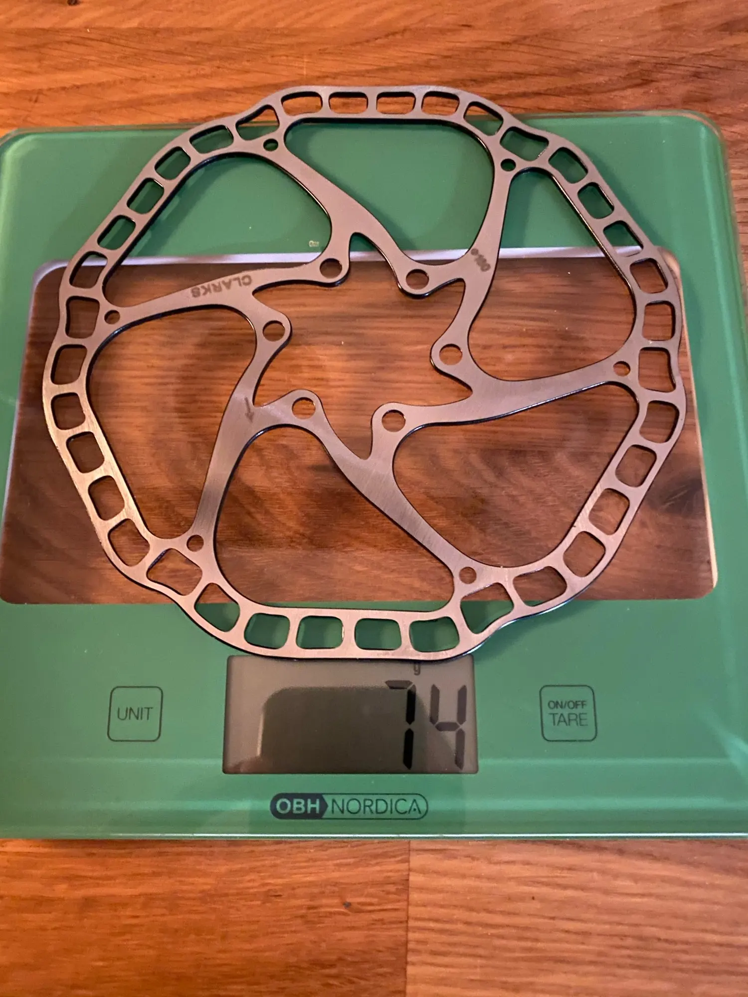 Заказал диски 160 мм, доставка была супер быстрой! К сожалению, диск 160 мм должен был весить 68 г +/- 6 г в соответствии с добавкой, но один диск был 78,7 г, а другой-80,9 г. Они по-прежнему легче, чем обычный диск Tektro, но практически нет заявленного веса. Эти диски также имеют несколько поверхностных царапин и постоянных следов от сидения на других дисках.