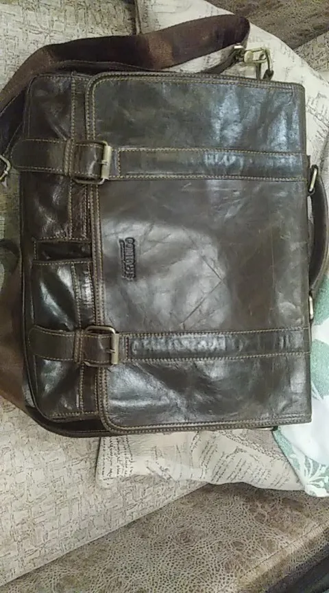 доставка быстрая! портфелем доволен, кожа настоящая, добротная. говорят что очень пахнет,но это считаю это нормально. перед доской обработал обычным кремом для рук,не жирным и кожа стала выглядеть еще лучше. из недостатков, одна царапина на коже и очень хлипкие замки носить разбитую сумку за ручку не стоит,могут не выдержать. и при носки за ремень сумку немного теряет форму, но выход есть. я ношу в ней планшет для бумаг,он по работе нужен и с формой все норм. покупку рекомендую!