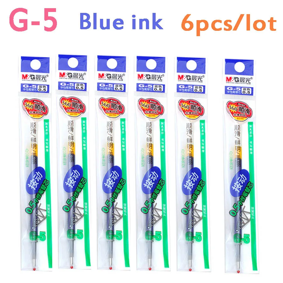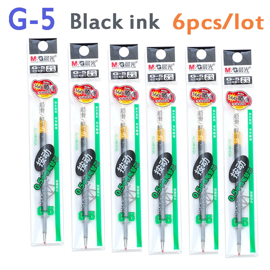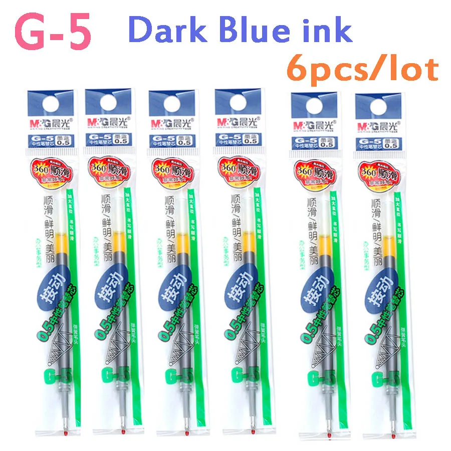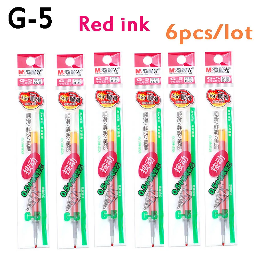 6 шт.партия G-5 Пресс Заправка для гелевой ручки 0,380,5 мм синийчерныйтемносиний и красный чернила студенческие канцелярские принадлежности пуш-ап Тип гелевых ручек