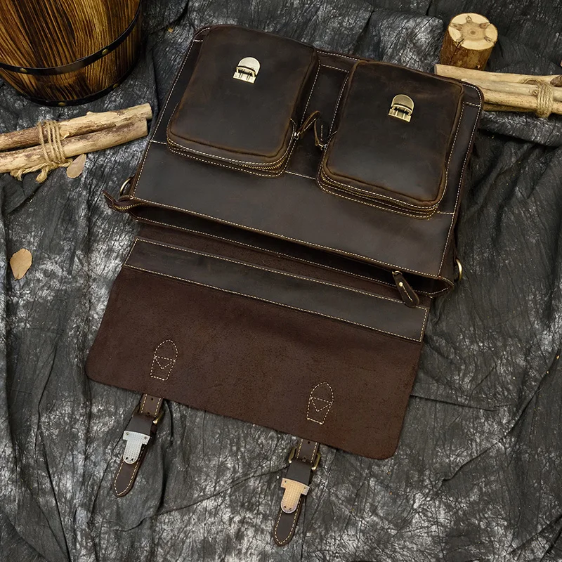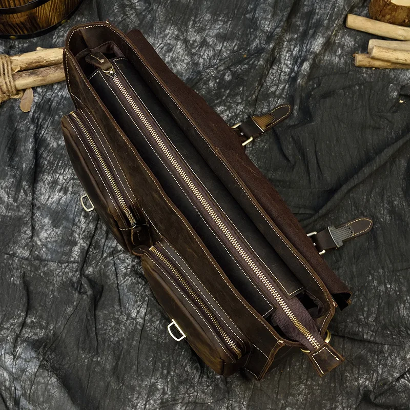 Материал: натуральная кожа 100% воловья кожа Размер: 42 см x 14 см x 30 см Масса: 2 кг Стиль: винтажный Модный популярный стиль Подходит для 15,6-дюймового ноутбука