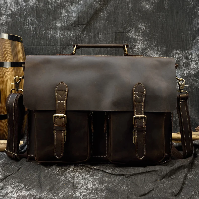Портфель мужской из кожи Крейзи Хорс в стиле ретро, вместительная с...