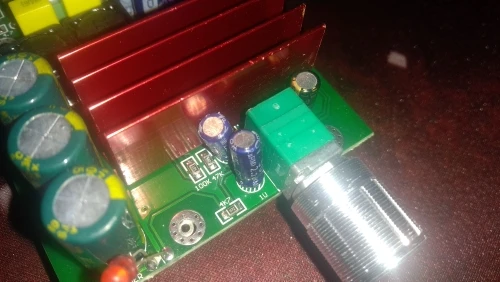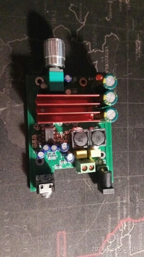 В общем, есть нарекания по качеству платы. Разъем питания бракованный, не смог в него вставить ни один штекер, боковая пластина не отгибается в сторону, пришлось его выпаивать и ставить другой. И еще косяк, один из кондеров, тех что поменьше, как будто вытекший, он был в каком-то синем налете как в порошке. Не знаю, будет ли видно на фото. Спор открывать не стал, всякое бывает. Если продавец честный пусть сделает компенсацию. Но плата работает, подключал через блок от ноута НР 19В 4.75А, динамик 60 Вт на полную громкость начинает хрипеть. Комфортный уровень где-то на половине громкости. Посмотрим как от 12В в машине будет качать