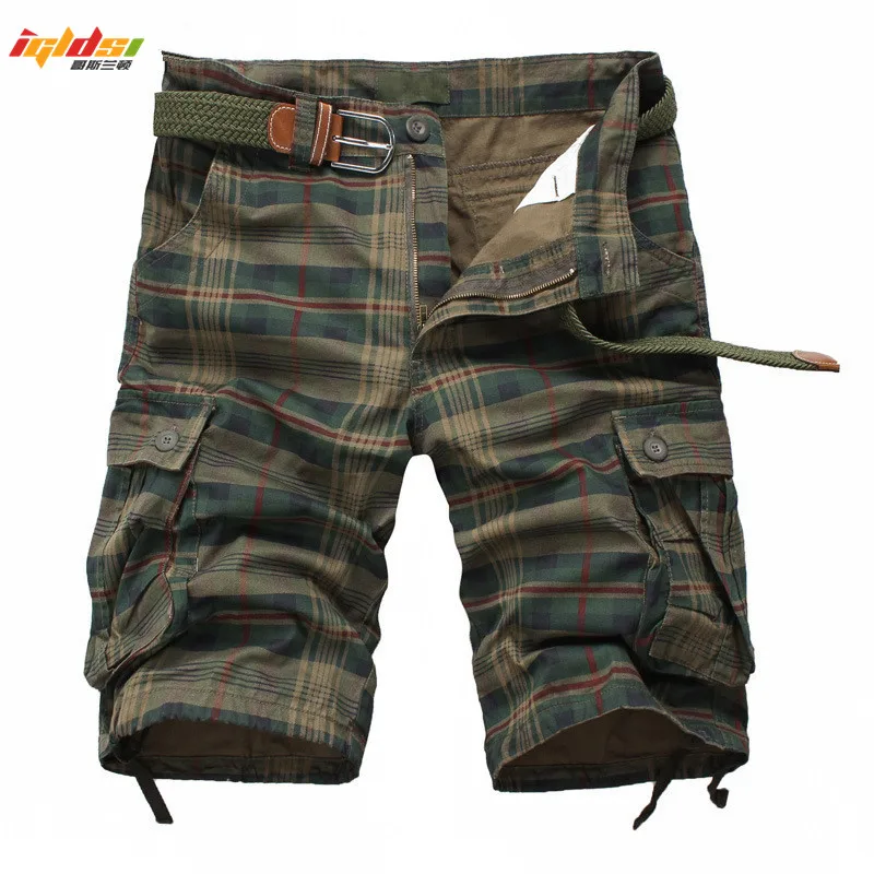 Мужские шорты 2018 Модные клетчатые пляжные шорты мужские повседневные камуфляжные шорты военные Короткие штаны мужские бермуды карго комбинезоны
