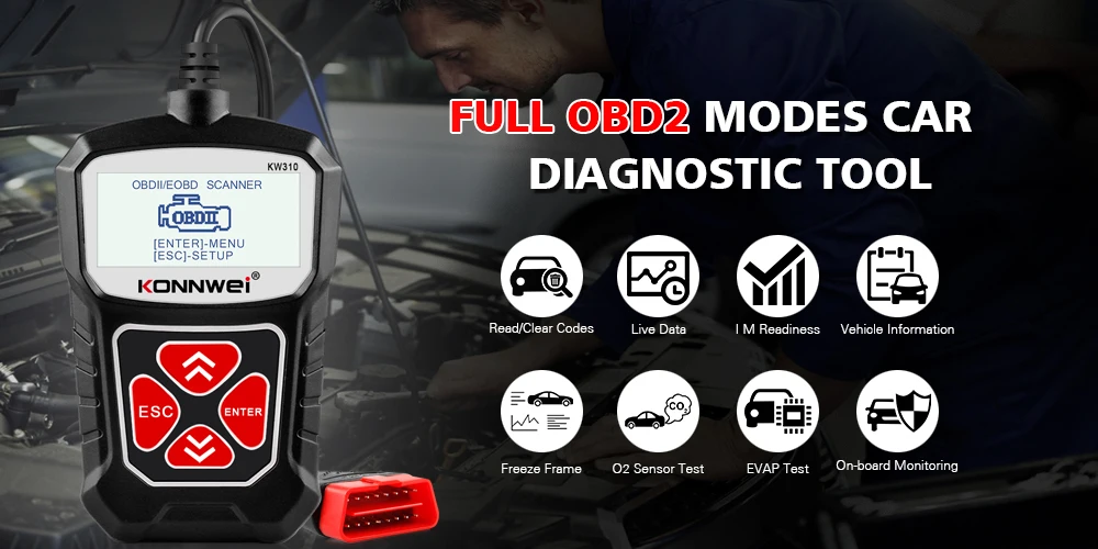 Диагностический прибор OBD2 KONNWEI KW850, полнофункциональный универсальный сканер для считывания кодов двигателя